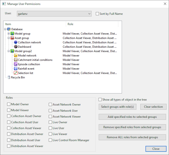 To display the Manage User Permissions dialog, right-click a Group or