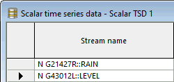 In the scalar TSD object, the names of the individual data streams in the file would be entered on separate rows in the Stream name column as N G21427R::RAIN and N G43012L::LEVEL.