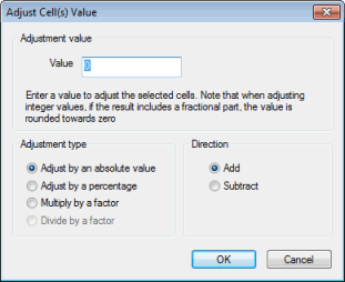 Enter the value to be used when altering the contents of the selected cells. Then select the method you want to use to adjust the cell values from the following: