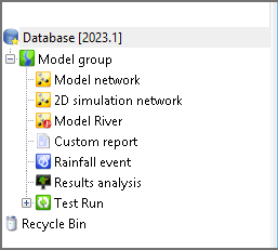 Database items are displayed in a hierarchical tree: