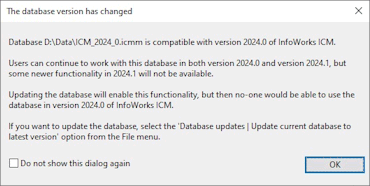 It contains a Do not show this dialog again check box. If unchecked (default), this dialog is displayed every time you open this database.