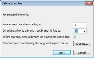 This dialog is used to automatically set the Branch ID of a selection of links, and is displayed when Define branches is selected from the Network menu.