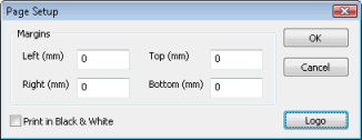 Click Logo to display the Print Setup Logo dialog. This dialog allows inclusion of a user defined title and logo, which will be printed at the bottom of the page.