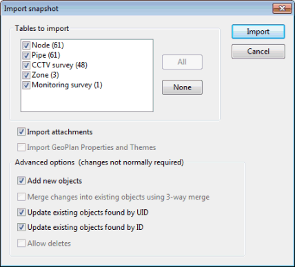 Example of Import Snapshot Dialog in InfoAsset Manager