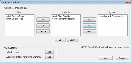 This dialog is used to specify the criteria to be used when creating long sections using the