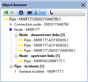 The OBW keeps a history of objects which can be accessed via the Backward / Previous ( Click the Backward / Previous button to go backwards, to the previous object opened in the OBW. Click the Forward / Next button to go forward, to the next object opened in the OBW. Tip: If an object in the list has been deleted (or the corresponding GeoPlan has been closed) the window will read