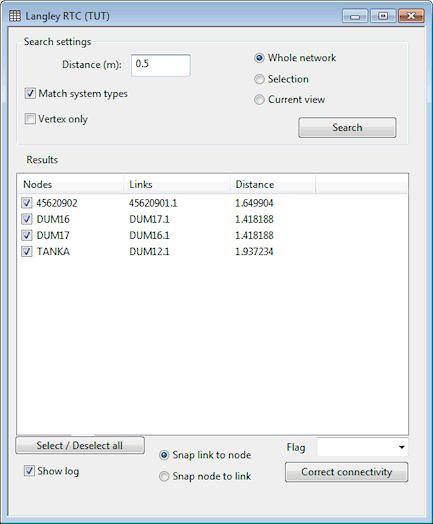 Click this button to correct the connectivity of the objects selected in the Results list. The Move Node dialog will be displayed. Use the options on this dialog to correct connectivity by snapping the nodes and links together according to the selected snapping option. |