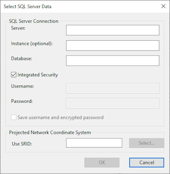 Check the Integrated Security option to authenticate connection to SQL Server by current Windows account name and password. If the Integrated Security option is unchecked, a Username and Password must be supplied. Check the Save username and encrypted password option to store the username and password entered in the boxes above. |