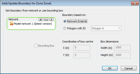 Polygon with ID: select a network polygon from the dropdown list. A zone boundary will be created based on the network polygon boundary.