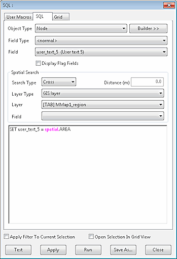 This will set the User Text 5 field of any nodes inside a GIS polygon in the GIS Layer "MMap1_region" to the value in the "Area" field of the GIS polygon.