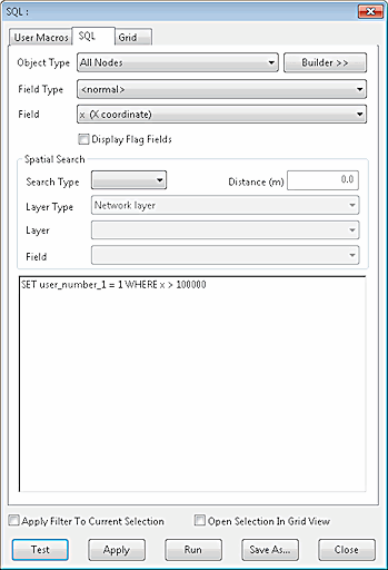 Sets user_number_1 field to 1 for all objects of the chosen object type with x coordinate > 100000