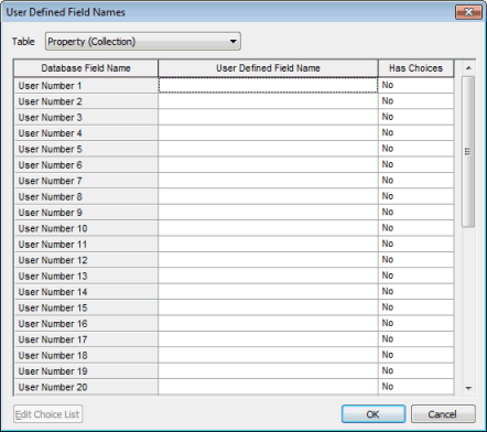 User defined field names from the File menu, and is used to edit the field names of User Fields for the current database.