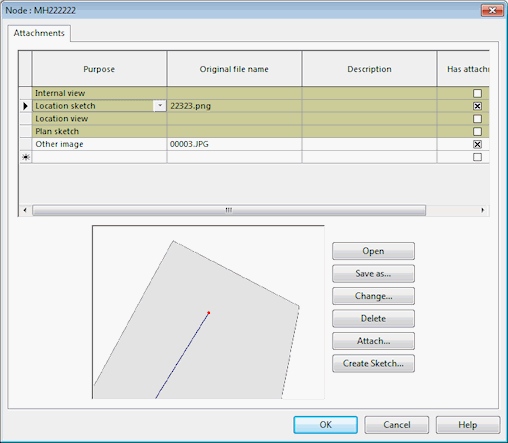This editor is used to view and manage pictures, sketches, photos, and other file attachments for a network object. Attachments can be specified for all asset, survey, repair, incident and zone objects.