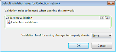 This dialog is used to set network validation preferences. It is displayed when Default validation rules is selected from the Network menu.