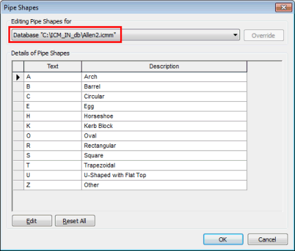 This Pipe Shape information, in conjunction with pipe Height and Width data will be used to display a Shape Diagram for individual pipes on the Dimension Page of the Pipe Property Sheet (tabbed