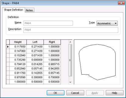 - Asymmetric: User defined asymmetric shape (see Shape Description Grid below)