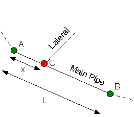 where: D = DS Invert Level of pipe CD A = US Invert Level of pipe AB x = Distance from downstream node of Pipe AB to node D L = Total Length from node A to node D |