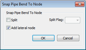 The Snap Pipe Bend to Node dialog is part of the process of snapping an intermediate bend in a pipe onto a node and incorporating that node into the pipe. You can: