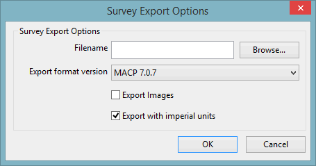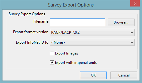 - Set the status of the Export with imperial units option. Check to export using imperial units; the IsImperial field in the Inspections table of the MACP database will be checked. Uncheck to export using metric units; the IsImperial field in the MACP database will be unchecked.