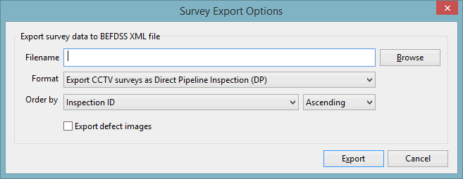 - Export CCTV surveys as Direct Pipeline Inspection (DP) - traditional CCTV survey