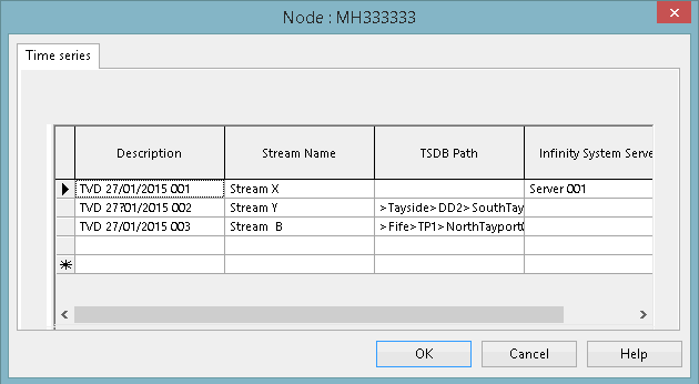 This grid is used to link new or modify existing time series data streams to any of following types of InfoAsset Manager network objects: