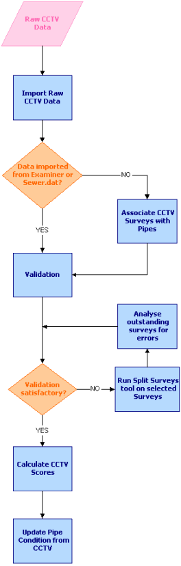 Firstly, the raw CCTV data must be imported into CCTV objects within InfoAsset Manager. This can use several methods including the Open Data Import Centre and various specialist CCTV importers.