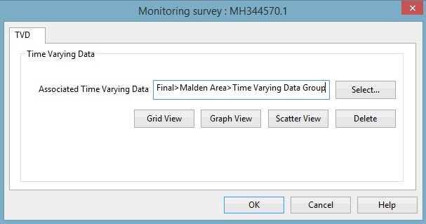 This editor is used to associate time varying data data with a monitoring survey, and to view the data in a time varying data editor or on a graph.