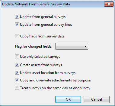 To update the network from General Survey and/or General Survey Line data: