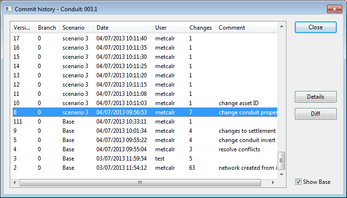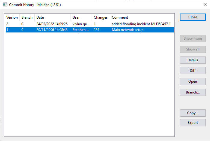 Another version of this dialog (the Select Commit dialog) is displayed in cases where there is an option to select a previous version of a network or other version controlled item. Select the version to be used and click OK. Click Use latest to select the current version of the item including uncommitted changes.
