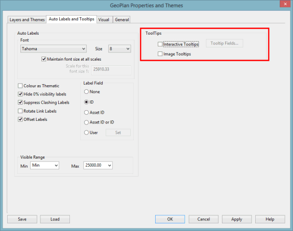 These are switched on by checking Interactive Tooltips in the Auto Labels and Tooltips page of the GeoPlan Properties dialog.