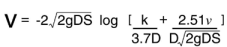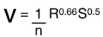 Where n = Manning roughness coefficient S = Hydraulic gradient (m/m) V = Velocity (m/s) R = Hydraulic radius = D/4 (m) |