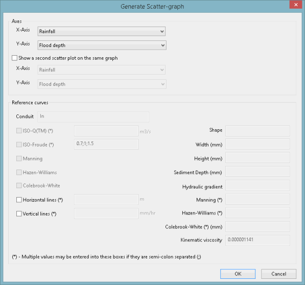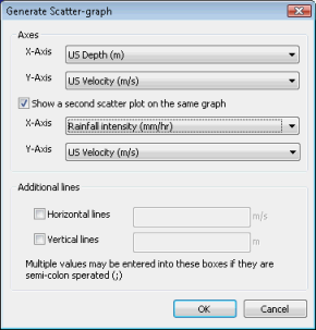 Select at least one pair of variables to display on the scatter graph. You have the option to display a second pair of variables on the same graph by checking the Show a Second Scatter Plot on the same graph box. The second plot will be shown using an alternate colour by default.