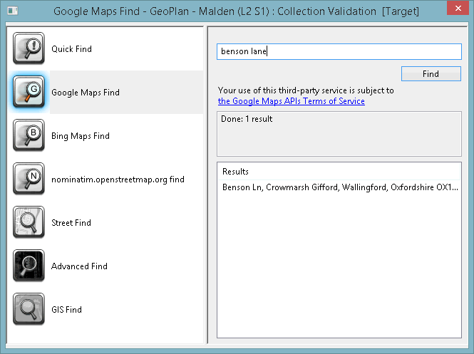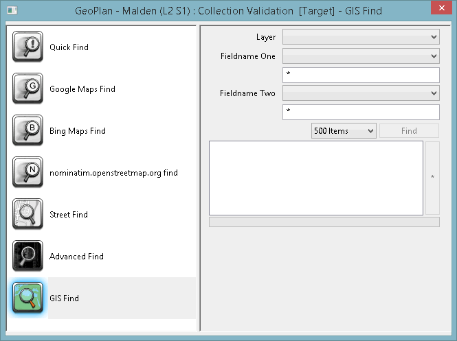 Objects in additional GIS layers loaded on the GeoPlan Window can be searched for using the GIS Find tool.