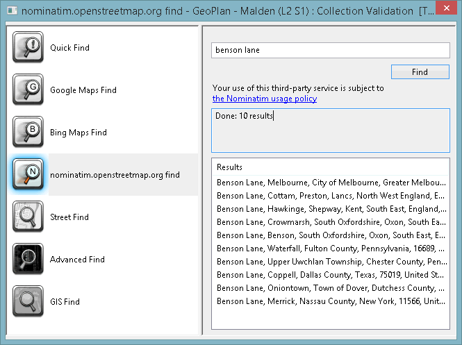 Click 'Nominatim' Find in the GeoPlan Find dialog.