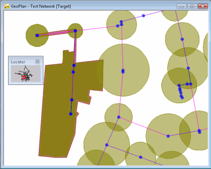 A powerful feature of the GeoPlan Locator Map is the ability to move the area displayed by the main GeoPlan Window quickly and easily anywhere in the network.
