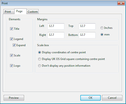 The Scale box displays the current scale as taken from the GeoPlan. You may want to adjust this to the nearest standard used scale, such as 1:10,000.