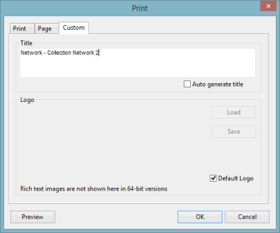 You can view the logo (RFT text and/or image) before printing by clicking the Preview button, or by choosing Print preview from the File menu.
