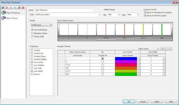 - In the Properties section, check Line Width in order to add this property to the Ranged Themes grid.