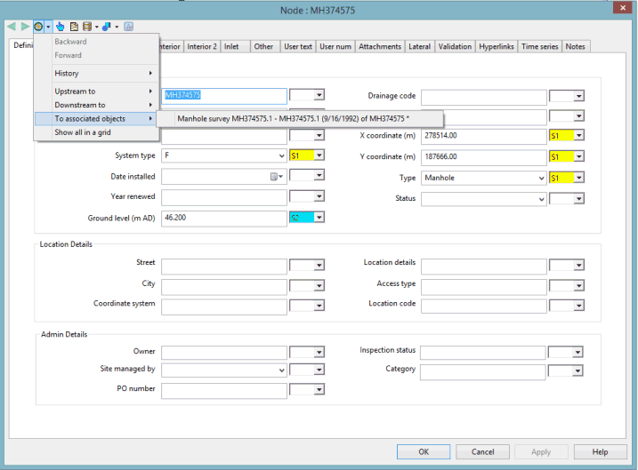 Alternatively, click on the Properties option to open the Property Sheet for the related object.