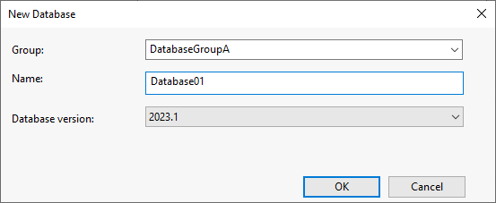 The database version for the new workgroup database. The available versions are listed in the dropdown. Note: The oldest version available is 2023.0. |
