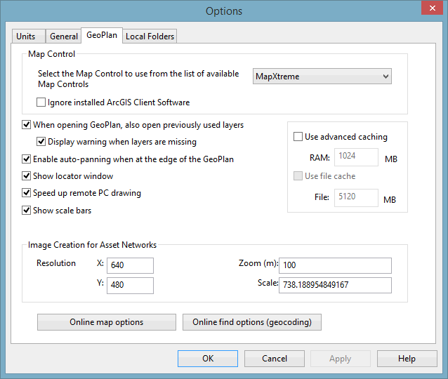 | Speed up remote PC drawing | Redrawing of the GeoPlan can slow down remote desktop sessions; select this option to improve performance by removing intermediate redraws during panning and zooming operations. |