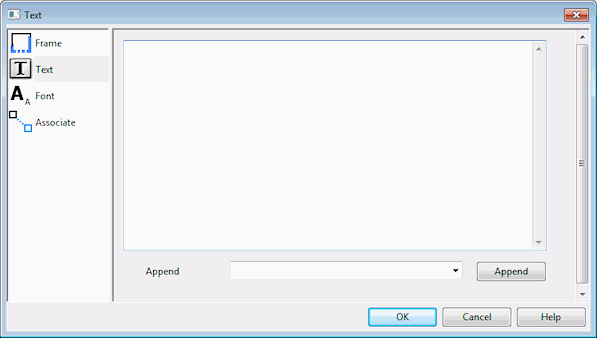 The Append dropdown contains a list of variables that may be included in the text frame. For example, #{networkname} can be used to display the name of the network currently displayed in the associated GeoPlan frame. Select a variable from the dropdown list and click the Append button to add the variable to the end of the text entered in the text box. |