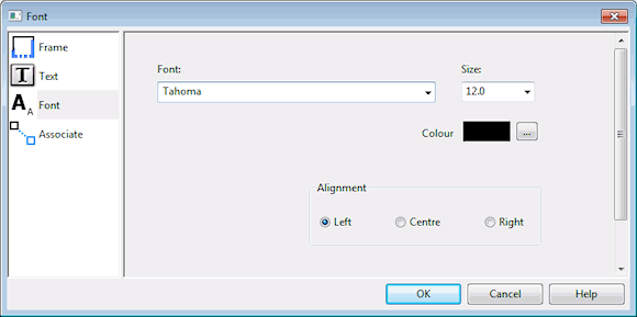 | Colour | Click the ... button to display a colour picker to set font colour |