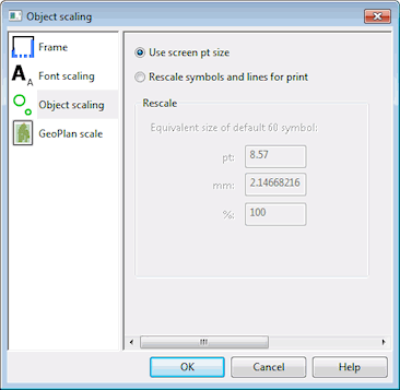 | Rescale symbols and lines for print | Manually set a symbols and lines scaling value by entering the equivalent size for the default symbol size setting of 60. |
