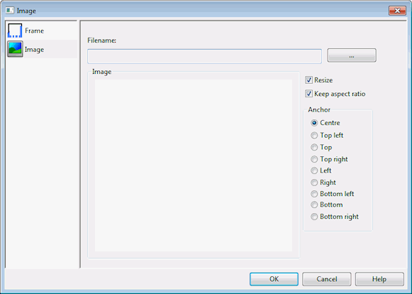 Click the ... button to display a Windows File Open dialog. Browse for an image file to be included in the image frame. |