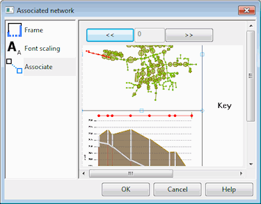 To set the association, click on the frame that the current frame is linked to. The arrows at the top of the properties dialog can be used to scroll between print layout template pages.