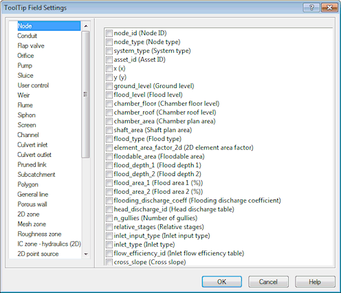 - Check the box next to a field on the right side of the dialog to display it in tooltips for the currently selected object type.