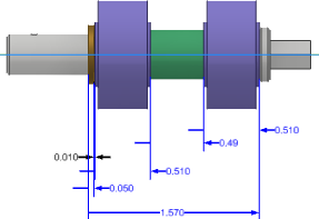 The following image is an example of a 1D problem. No warning message is displayed because the tolerance stackup of the parts occurs in a single linear direction.