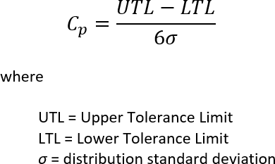 The standard deviation calculated for the normal distribution of each dimension is calculated from the following formula for Cp: