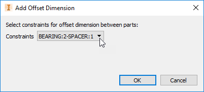 Click the drop-down to list all the assembly constraints defined for the current stackup. Click an entry and then click OK to add a row between two parts in the Stackup Details table with the prefix Offset. Specify a nominal value and tolerance for the distance. To remove an offset, right-click on the row and choose Delete.
